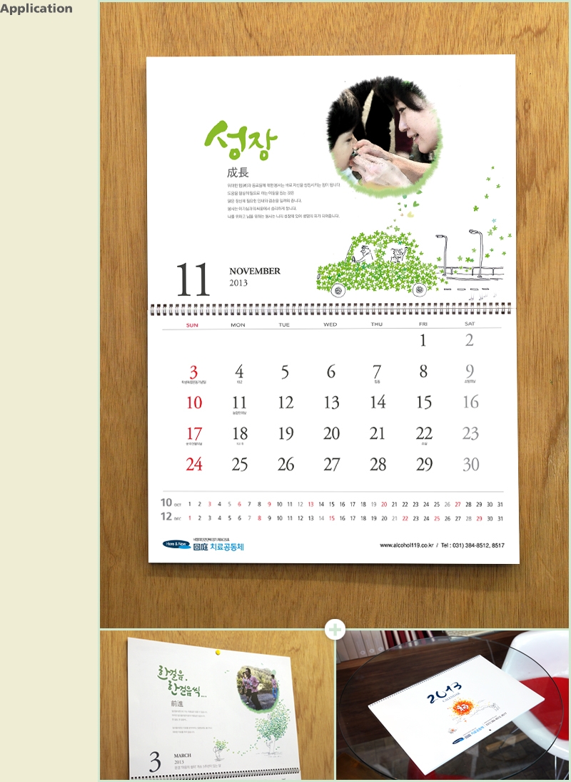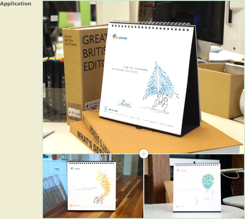 활용한 성민병원의 2013년 캘린더입니다. 따뜻한 느낌의 일러스트가 환자들을 생각하는 병원의 이념을 잘 보여주고