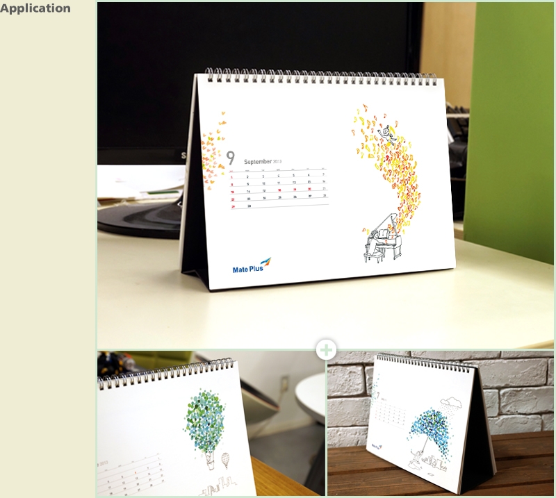메이트플러스의 2013년 캘린더입니다. 군더더기 없는 깔끔한 디자인으로 일러스트를 더욱 돋보이게 하고