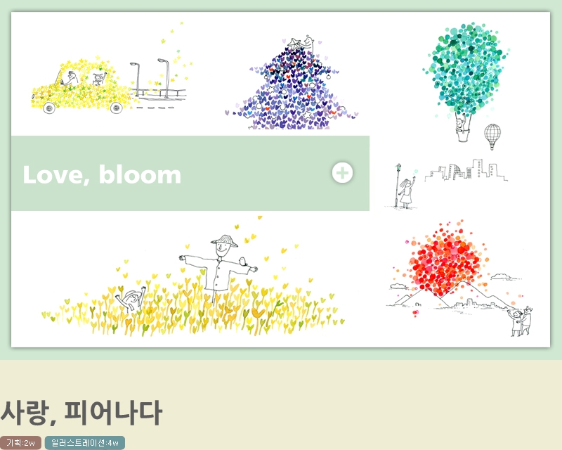 수채화의 패턴과 펜드로잉이 어우러진 따뜻한 일러스트를 활용하여 고객에게 편안하게 다가가고자 하는 기업의 이념을