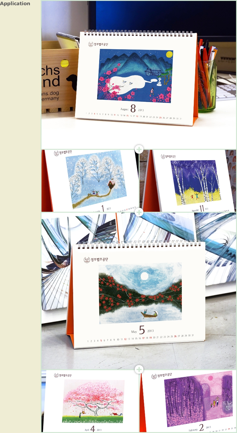 사용한 정부법무공단의 2013년 캘린더입니다. 심플한 프레임에 일러스트를 넣어 전체적으로 정돈되고 절제된