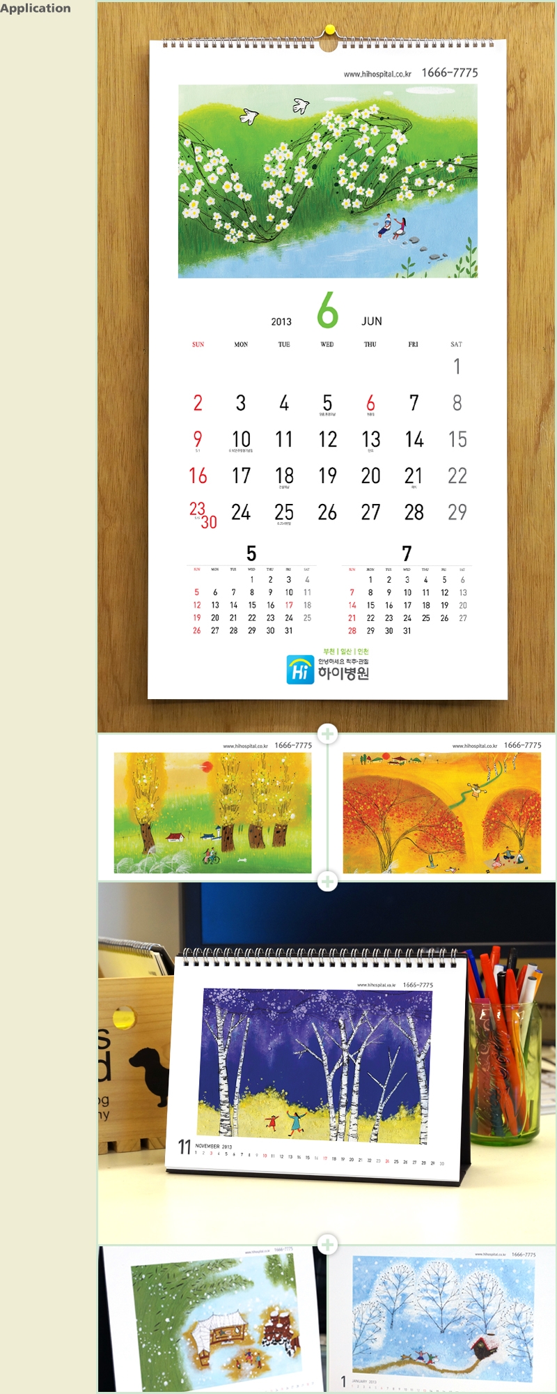 사용한 하이병원의 2013년 캘린더입니다. 심플한 프레임에 일러스트를 넣어 전체적으로 정돈되고