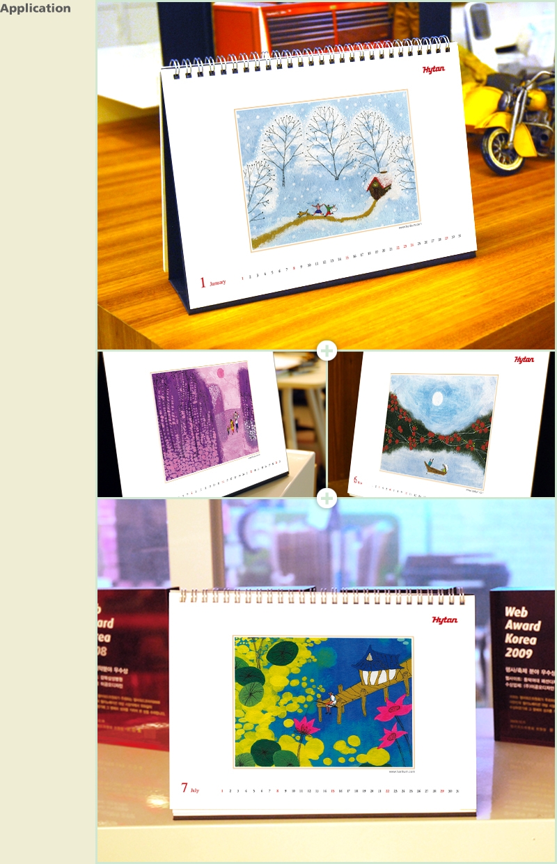 동양적 감성의 아련한 풍경들을 따뜻한 색감으로 풀어낸 2012년 한금의 캘린더입니다.