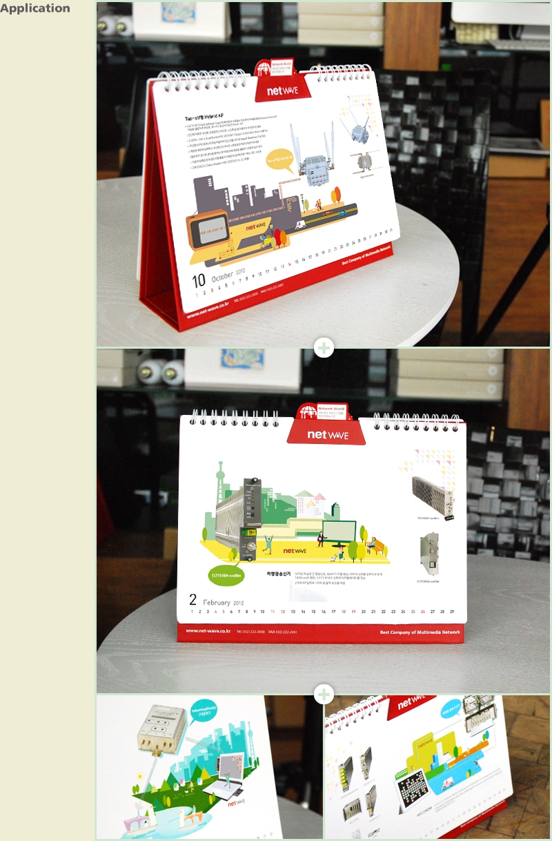 넷웨이브(주) 2012년 탁상용 캘린더입니다. 기업 로고의 레드컬러를 메인으로 하여 전체적으로