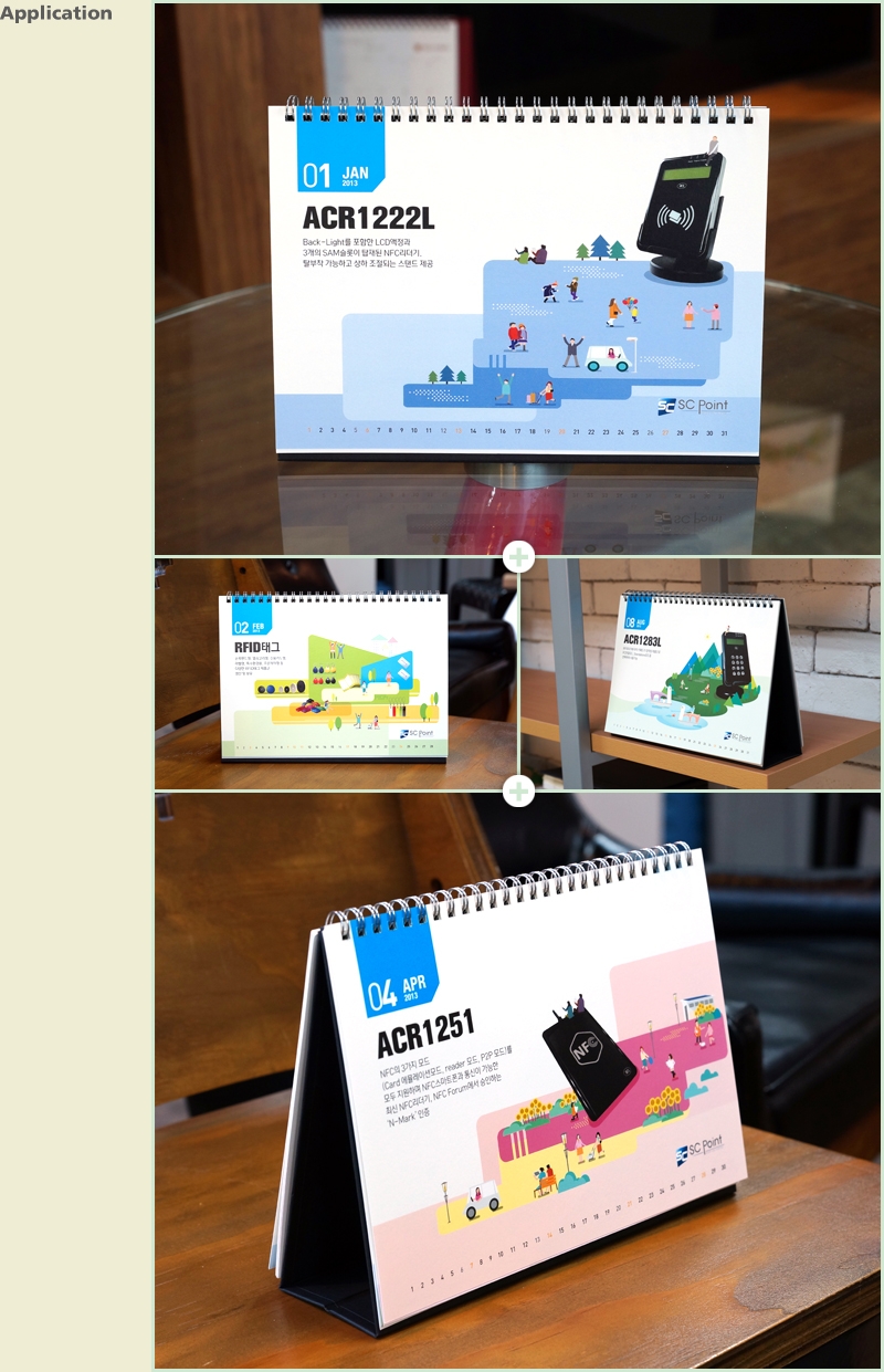 더욱 돋보이게 해주는 에스씨포인트의 2013년 캘린더입니다. 일러스트 속 작은 사람들이 제품과 함께