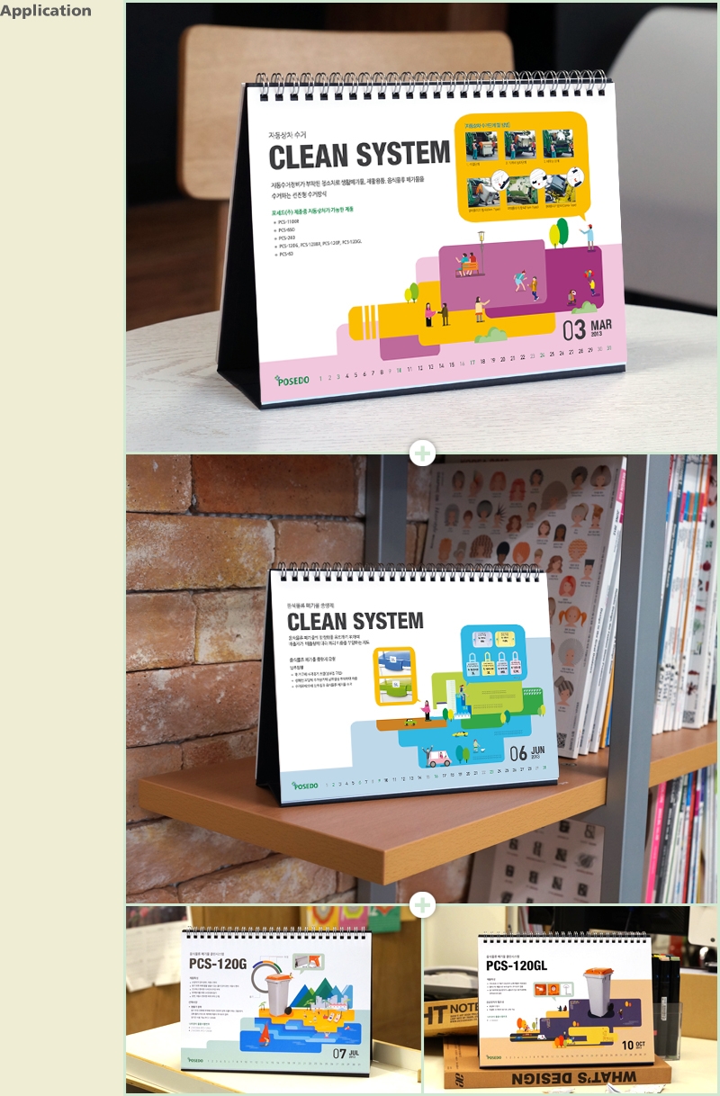 포세도 2013년 탁상용 캘린더입니다. 컬러풀한 그래픽의 일러스트와 제품이 잘 어우러져 제품을 부각시키는