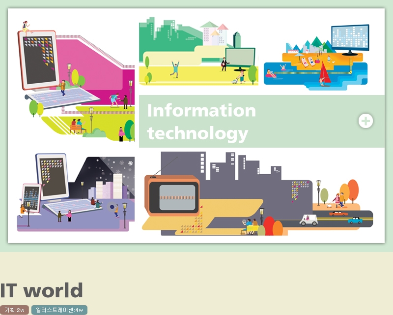 우리 삶에 많은 영향을 주는 IT의 다양한 모습들을 그래픽으로 표현한 일러스트입니다.