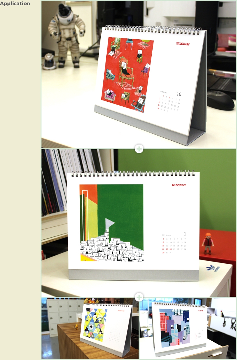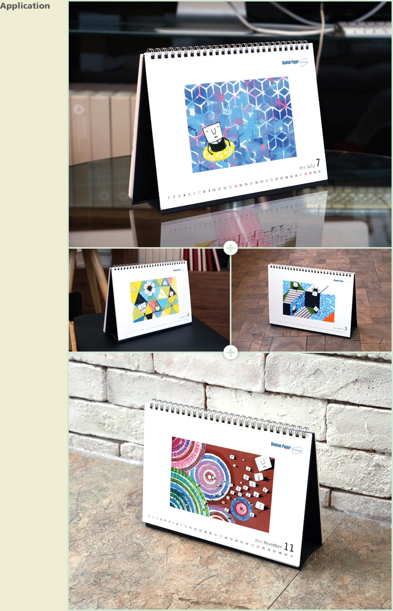 대한제지 2013년 탁상용 캘린더입니다. 귀여운 캐릭터의 다양한 모습들과 색감이 돋보이는 일러스트를